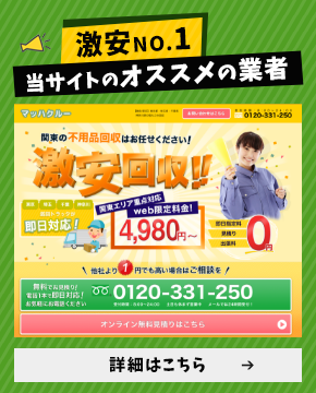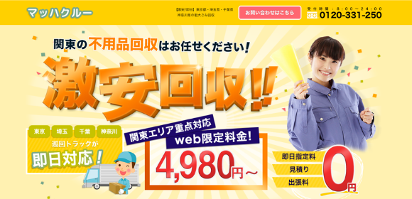 回収の早さと安さは業界トップクラス。「すぐに回収してほしい」「費用を押さえたい」ならマッハクルーがおすすめです。