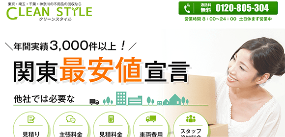 関東エリア限定の回収業者で、最安値基準の料金プラン。パック料金になっているので、追加料金も発生しません。不用品の多さでプランを選べば、費用を安くできます。