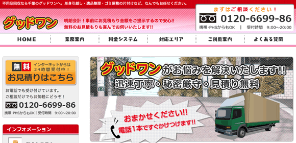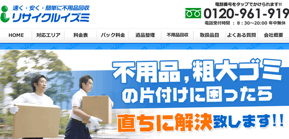 小さな不用品1つでも気軽に回収、実績も高く評判の良い回収業者です。他社よりも1円でも安く見積りしてくれるので費用を押さえたい人におすすめです。
