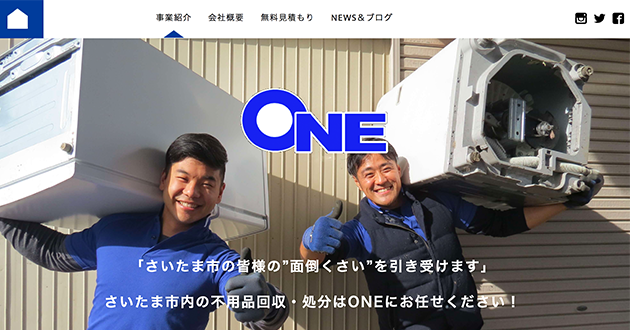 さいたま市の不用品回収業者として、市から認可を受けているのが「ONE」。少量の不用品や粗大ごみから大型の不用品まで、すべて定額で回収します。出来る限り、荷物をコンパクトにトラックに積み込むことでかかる費用を節約。不用品つめ放題プランは、トラックに合わせて3種類用意しています。